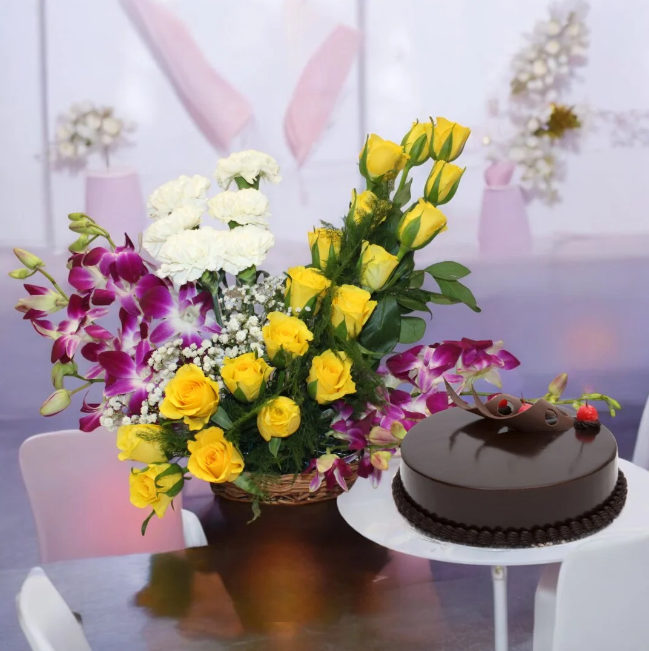 When words fall short, gifts speak volumes. A delightful Chocolate Truffle Cake paired with a stunning Yellow Roses Flower Basket is a timeless way to
